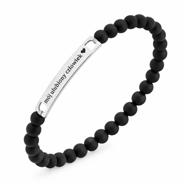 Męska bransoletka z naturalnych kamieni to elegancki, minimalistyczny dodatek wykonany z kamieni turmalinu o średnicy 6 mm, które wyróżniają się głęboką, czarną barwą. Kompozycję uzupełnia personalizowana blaszka ze stali nierdzewnej, umożliwiająca wykonanie indywidualnego grawerunku. Dodanie inicjałów, ważnej daty lub krótkiego napisu nadaje biżuterii unikalny i osobisty charakter.