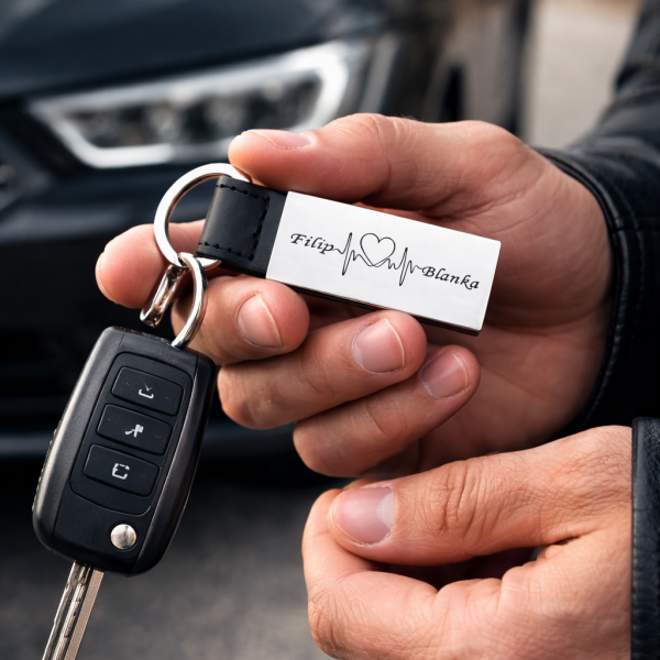 Napis na breloku wykonywany jest metodą precyzyjnego grawerunku laserowego 🔎 To technologia, która nie polega na nadruku ani naklejce – tekst zostaje trwale wypalony w materiale. Dzięki temu nie ściera się, nie blaknie i nie traci wyrazistości nawet przy codziennym użytkowaniu 🔑 Grawer jest odporny na czas, wilgoć i dotyk. Zachowuje swoją estetykę przez lata, pozostając czytelny i elegancki. To trwałość, którą widać i czuć. Tak jak słowa, które mają znaczenie, nie znikają z biegiem czasu. Można powiedzieć, że jest tak trwały jak więź między Wami 🤍 – dyskretny, ale niezawodny.