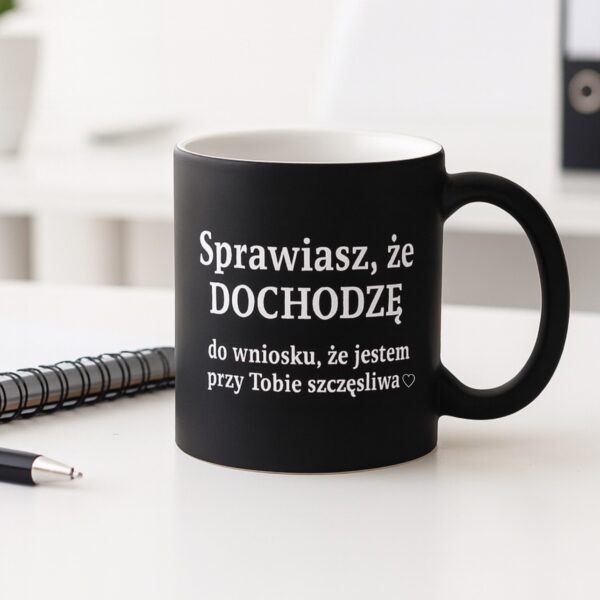 Tekst został naniesiony metodą polegająca na precyzyjnym wypalaniu materiału, która gwarantuje wyjątkową trwałość i dokładność detali. Dzięki temu każdy wzór czy napis pozostaje wyraźny i elegancki nawet po wielu latach użytkowania, czyniąc kubek nie tylko praktycznym naczyniem, ale także wyjątkowym, spersonalizowanym gadżetem.