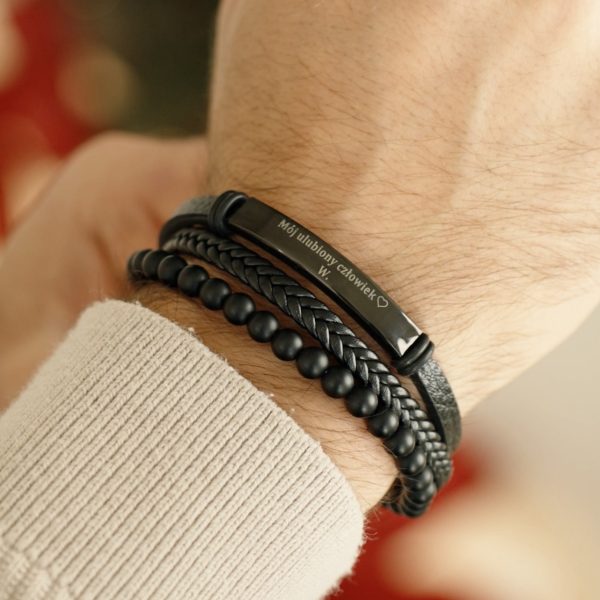 SKU: potrojna-meska-bransoletka-z-grawerem-czarna