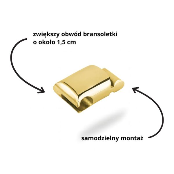 W zestawie znajduje się także przedłużka regulacyjna, która pozwala zwiększyć rozmiar bransoletki o około 1,5 cm – idealne rozwiązanie, jeśli szukasz bardziej uniwersalnego dopasowania lub prezentu dla kogoś, kogo rozmiaru nadgarstka nie znasz dokładnie.